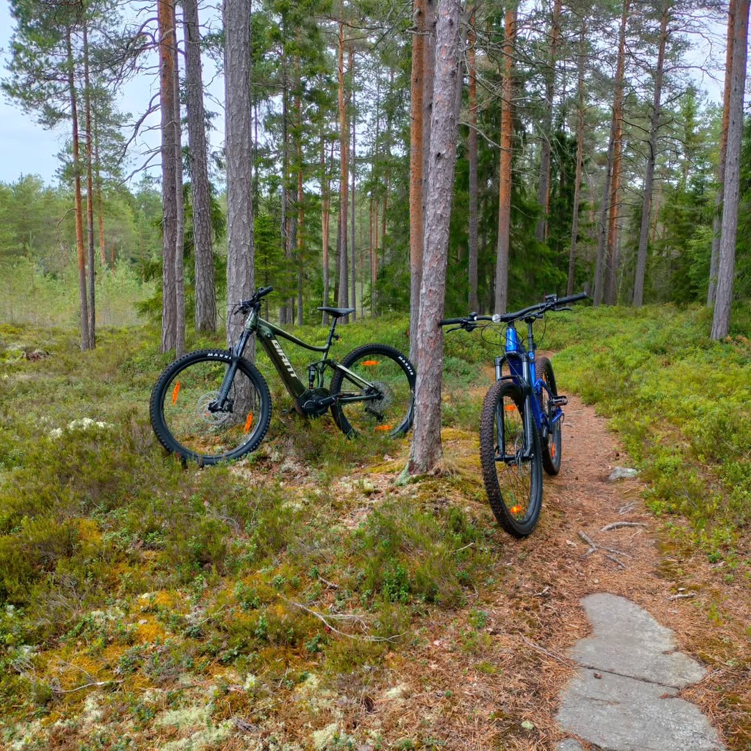 Vi erbjuder två stycken fullfjädrade E-mountainbikes för uthyrning, en i storlek M och en i storlek L. Cyklarna finns i Bennäs, men kan levereras enligt överenskommelse. Tag kontakt för mera info!